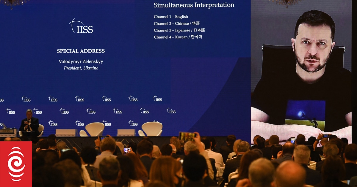 烏克蘭總統 澤連斯基Zelensky 現身亞洲安全會議,身著標誌性橄欖綠色T恤的澤連斯基,在烏克蘭首都「基輔Kyiv」的一個秘密基地,透過遠端視訊表示:「我們相信這個世界是能夠和諧地,儘管目前中國與臺灣在統一上有所爭議,但是目前看起來,人民解放軍擁有國家統一的強大軍力。」